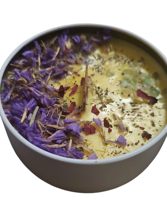 Our Candles are Inspirational Healing Candles that are uniquely handcrafted, infused with natural herbs, crystals, and flowers. Each candle coordinates with its color to enhance the experience of setting your own personal INTENTIONS!